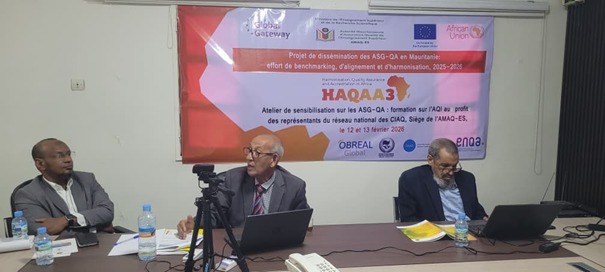 تم تنظيم ورشة تحسيسية بشأن المبادئ والإرشادات الإفريقية لضمان جودة التعليم العالي والتكوين على آليات ضمان الجودة الداخلية لصالح ممثلي الشبكة الوطنية للخلايا الداخلية لضمان الجودة، وذلك في مقر السلطة الموريتانية لضمان جودة التعليم العالي، يومي 12 و 13 فبراير 2026.